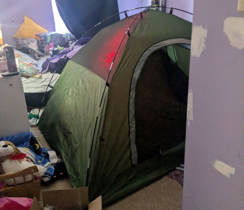Magical weekend of kids sleepovers, beauty spa day… Cause it was raining…. Minecraft, cartoons and popping a tent up in a tiny room lol.